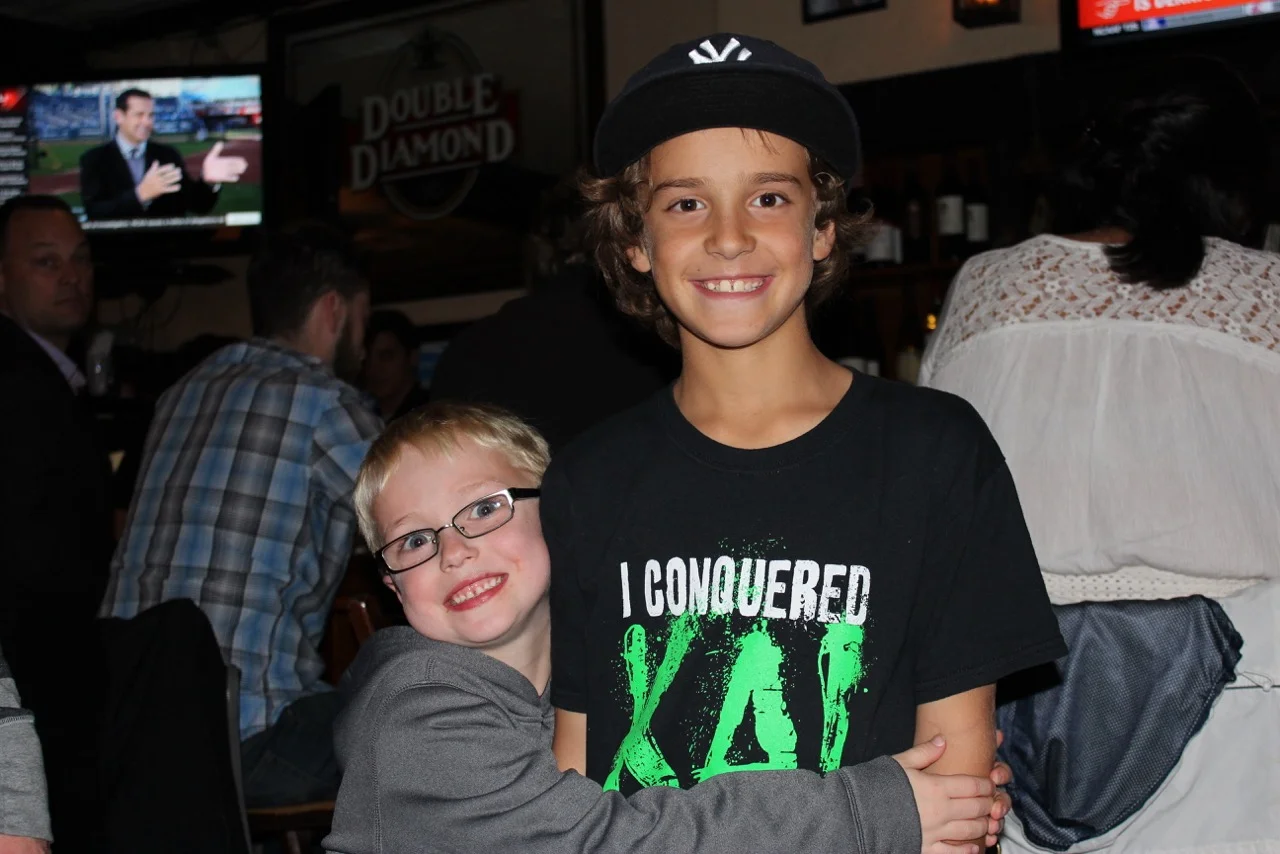 AB&G owner, Chris Kunisch, and Brookside 8th Grader, Nicole Tsigaras, AFEE's Burger of The Week Contest Winner of 2014.